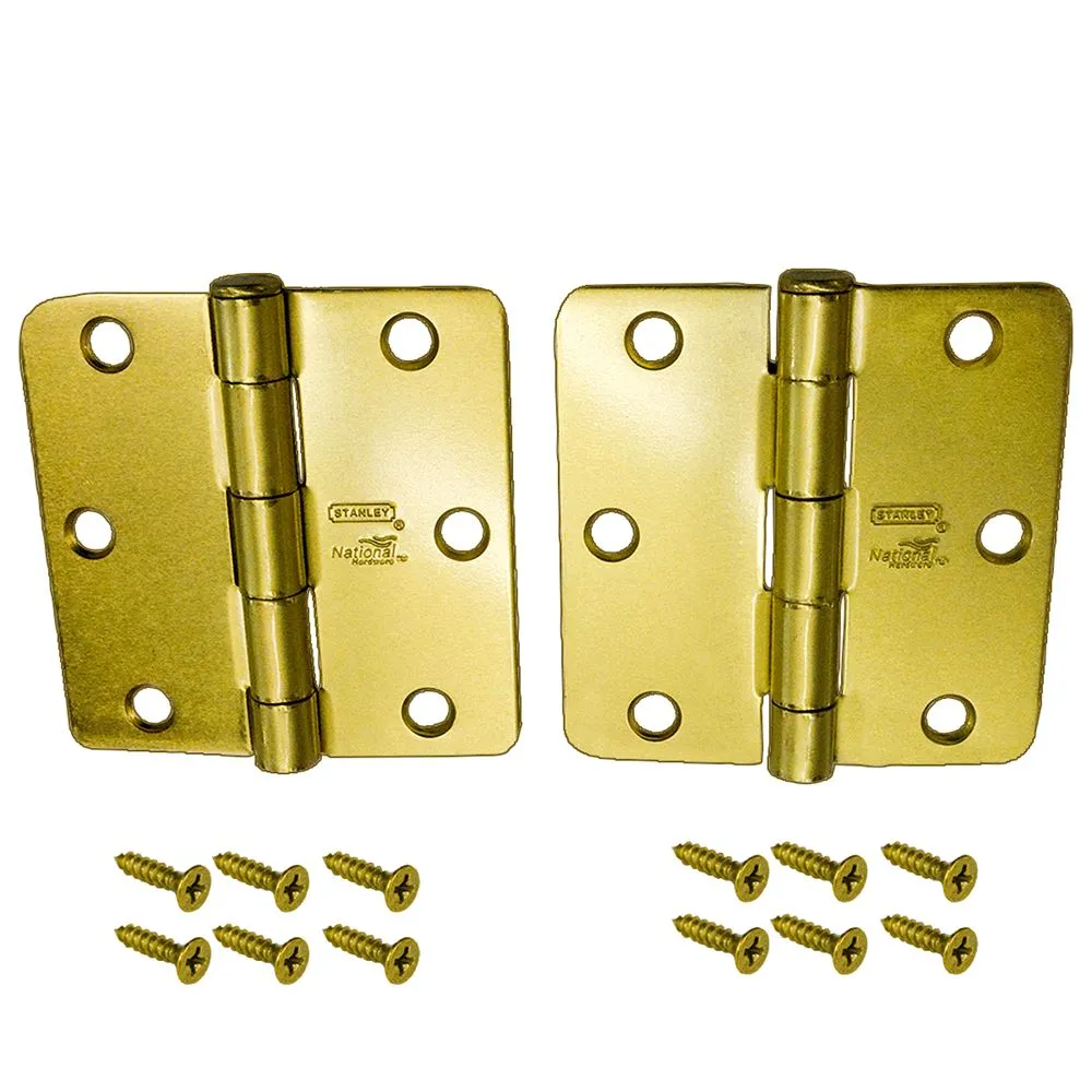 This 3-1/2" satin brass corner hinge features a standard design and is made of slightly lighter gauge steel. This hinge contains a loose pin and has 1/4" radius round corners.