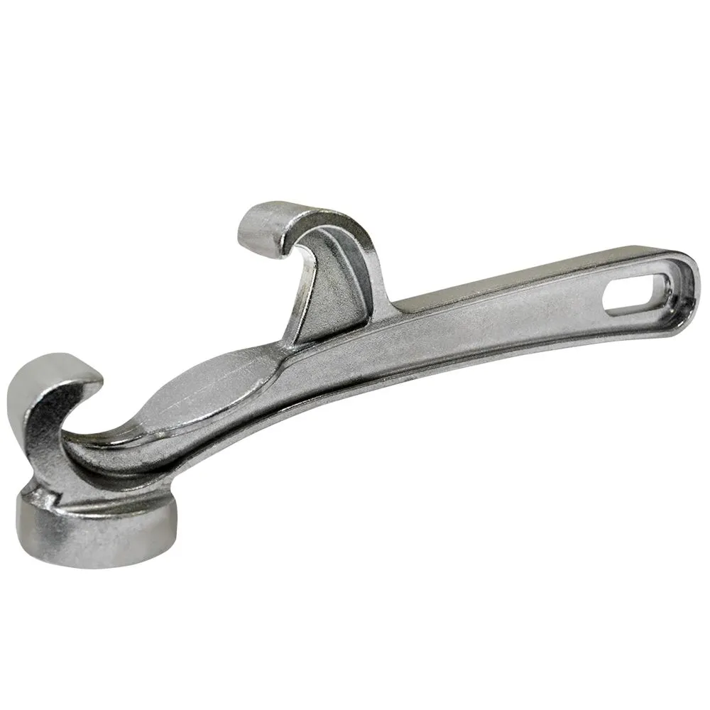 Open and reseal buckets with the help of this bucket opener tool. It is constructed from cast aluminum. It features a built-in hammer on one side.