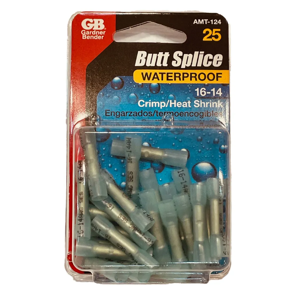 Need a waterproof heat shrink adhesive butt connector? This pack of 25 Butt Splice Heat Shrink 16-14 AWG is simple to use for a secure connection.