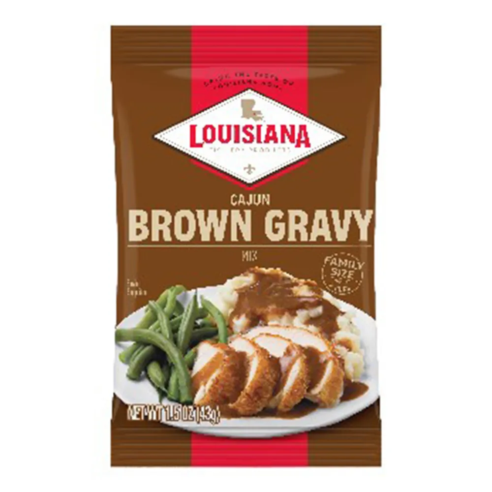 Use Louisiana Cajun Brown Gravy Mix to make a delicious addition to any meal.