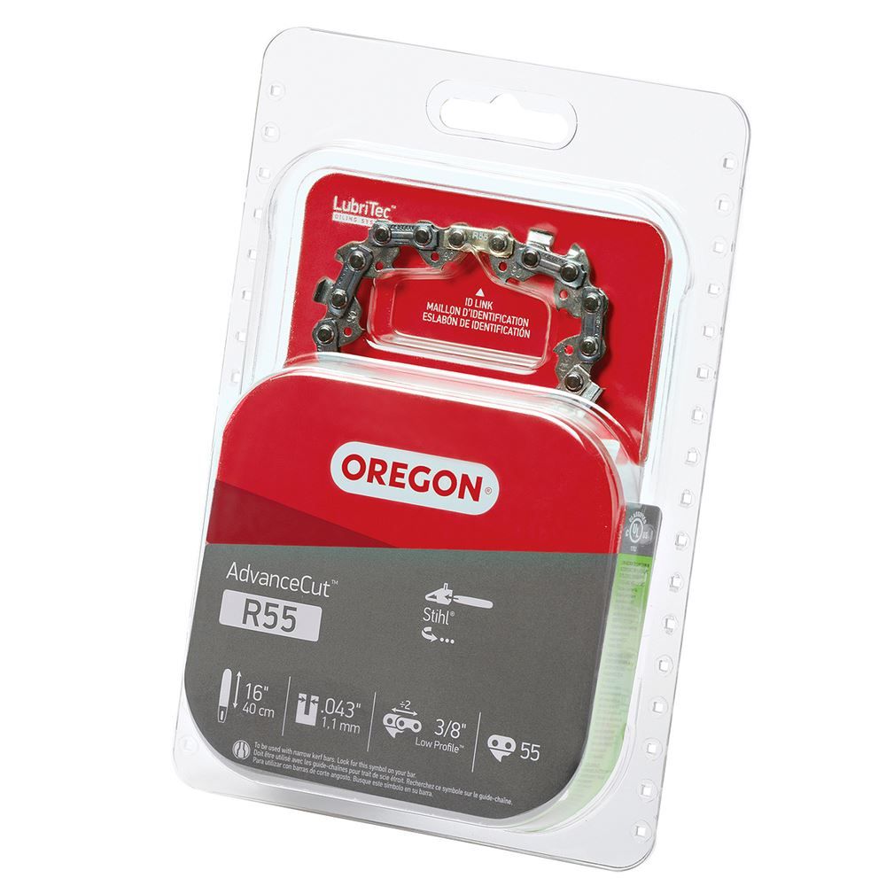R55 AdvanceCut™ 16-inch chainsaw chain has a low profile pitch, .043-inch gauge, and has 55 drive link length.