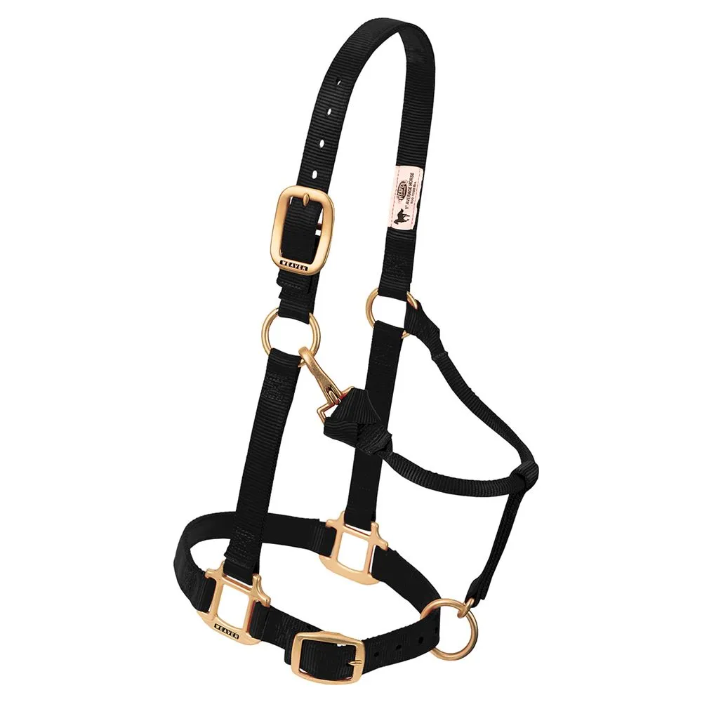 Confidently lead and direct your horse around the arena with this premium quality halter. Its made with high-quality nylon and features heavy-duty solid brass hardware. You can expect years of reliable service with triple-ply adjustable cheek straps and solid brass rolled throat snaps.