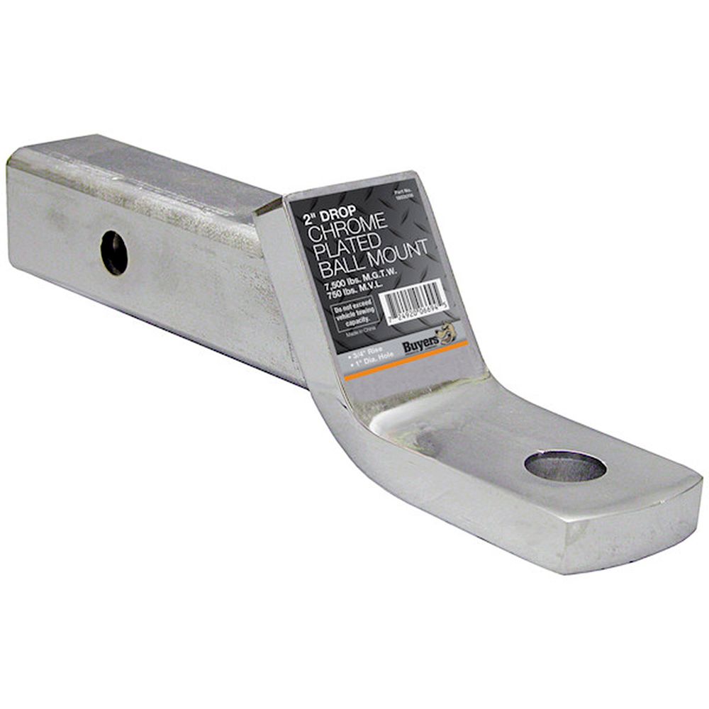 • Chrome Plated Straight Ball Mount, 2" shank, 1" hole & 2" drop