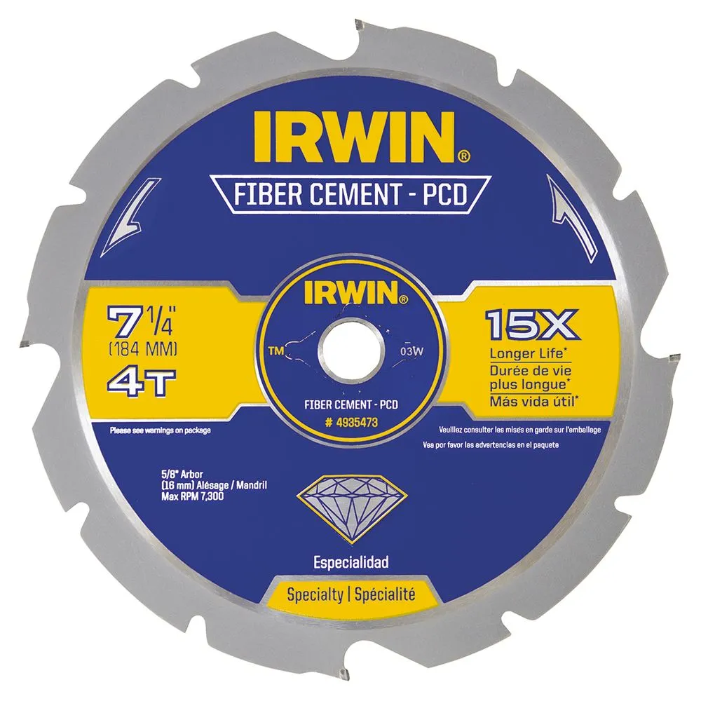 Irwin® 7-1/4" 4 Tooth PCD Fiber Cement Blade