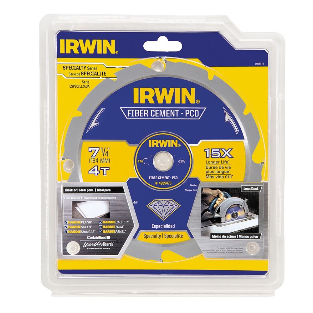 This fiber cement blade from Irwin lasts up to 15X longer compared to a standard carbide fiber cement blade.