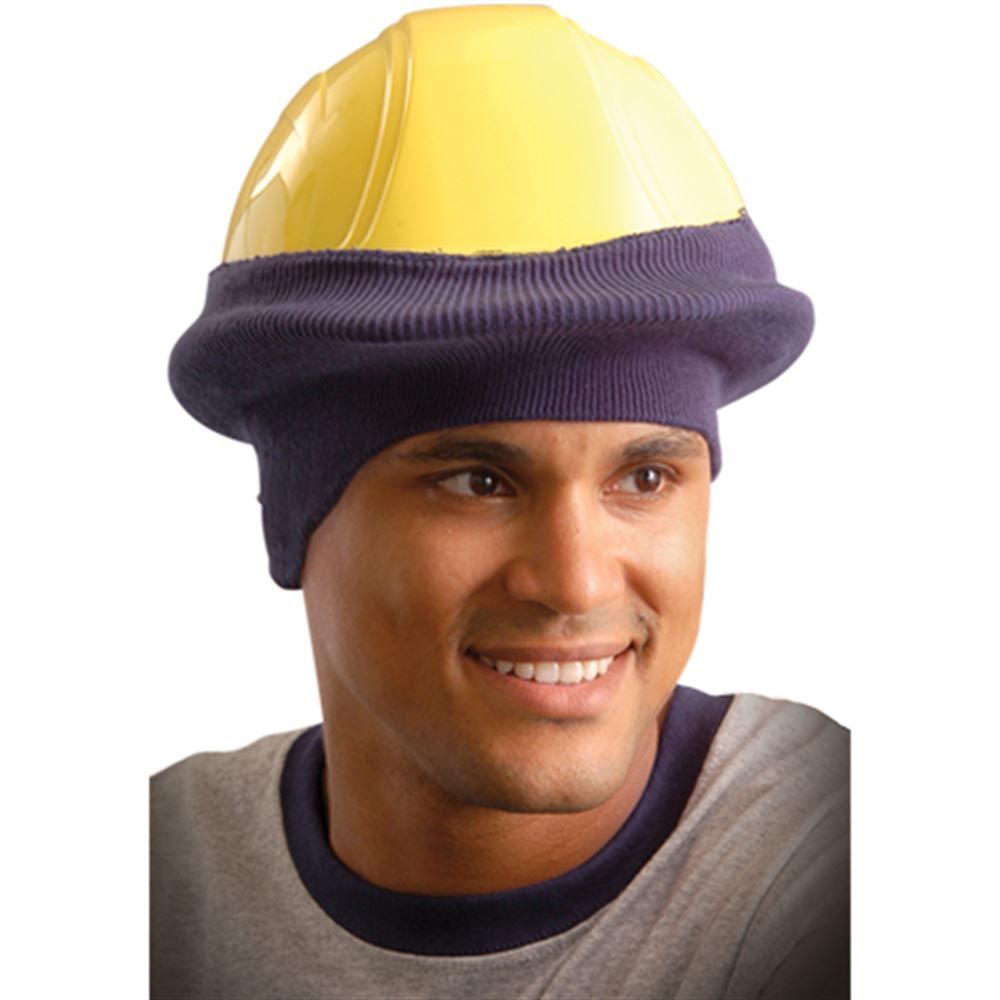 Made of stretchy polyester, this hard hat tube liner fits snugly over most regular brim hard hats for a soft, comfortable wear. The classic tube liner is designed to prevent wind tunneling through the hard hat. For warm protection in the winter, this navy tube liner can be used daily and is machine washable.