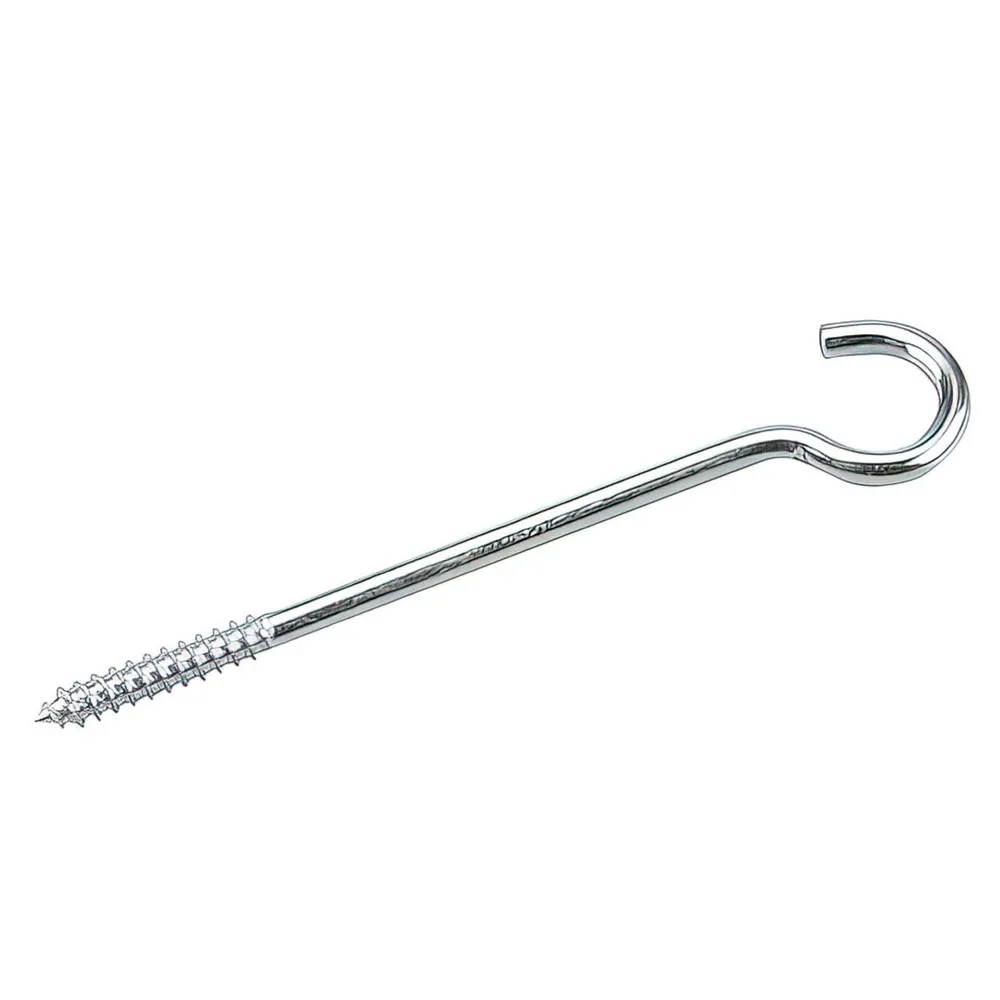 Versatile hook featuring an extended shaft to go through a post and nuts to secure each side. Ideal for hanging clotheslines and other various items. Suitable for indoor or outdoor use.
