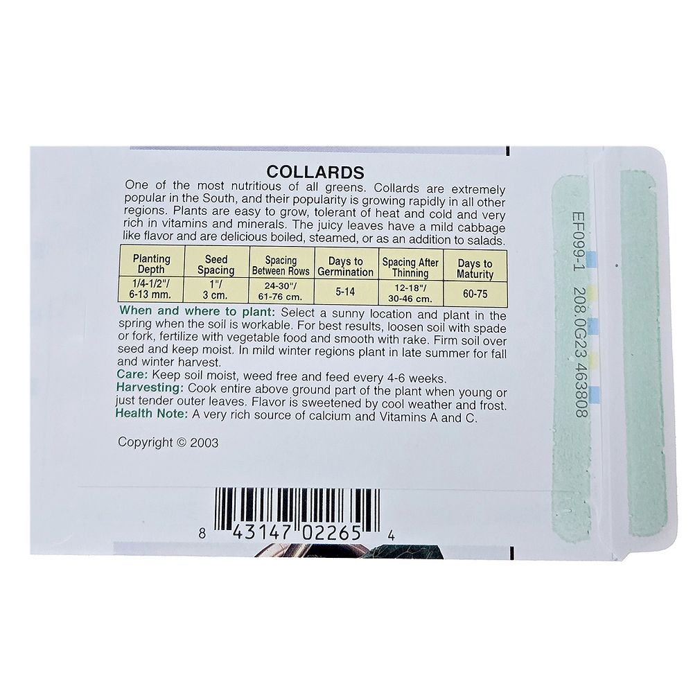 Plants are compact producing heavy heads on short stems. Leaves are slightly savoyed, darker green than ordinary collards and the flavor is distinctly better. Slow-bolting plants range from 14-18” high to 36-48” wide.