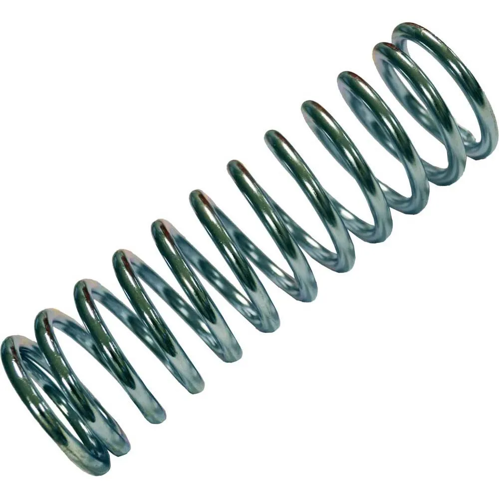 This compression spring is open wound helicals finished at the ends to provide resistance to compression forces. It is manufactured from Music Wire (ASTM A228) and Hard drawn wire (ASTM A227) and is zinc plated.