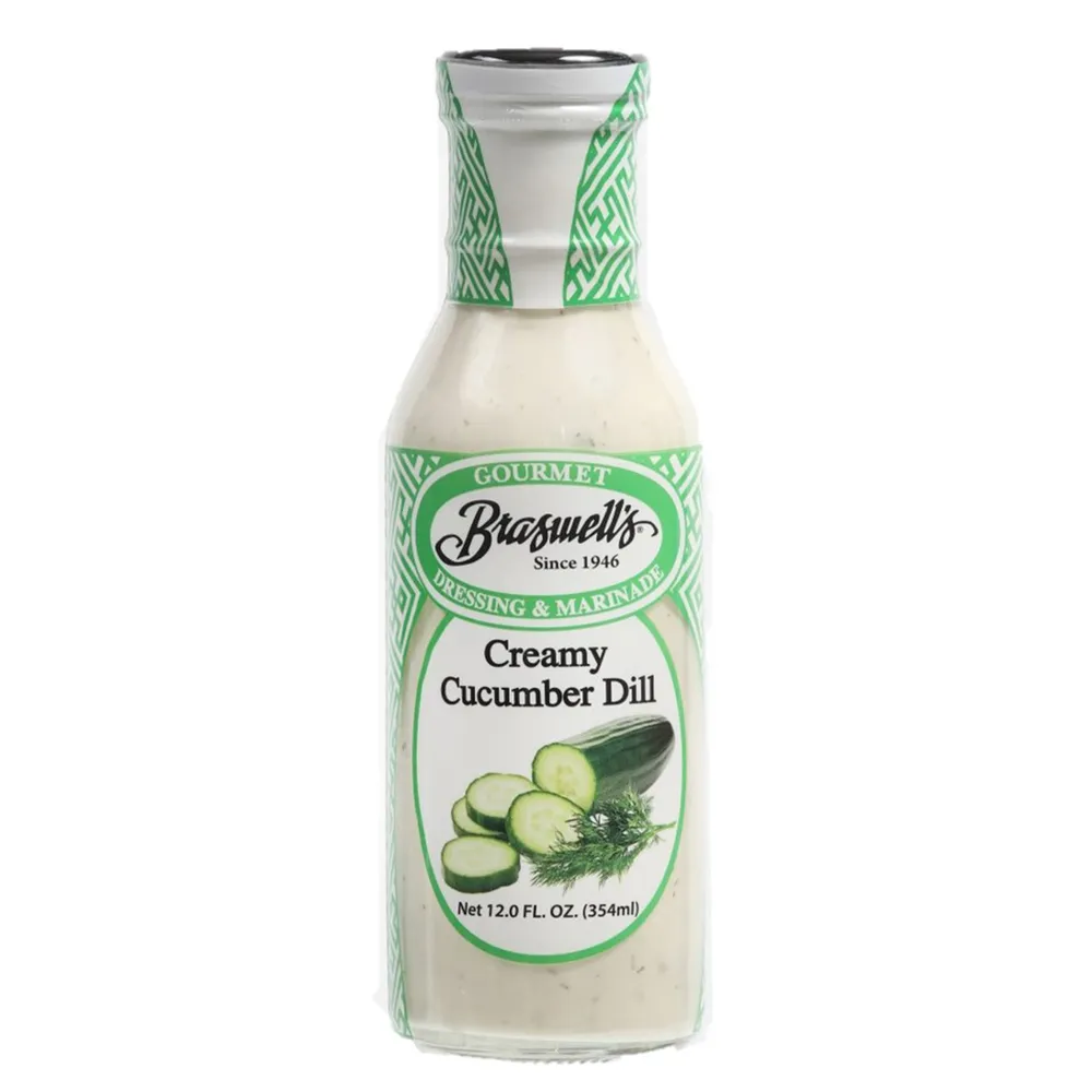 This 12-ounce bottle of Braswell's Creamy Cucumber Dill offers a cool and refreshing flavor, combining the taste of fresh cucumbers and dill with a creamy base.