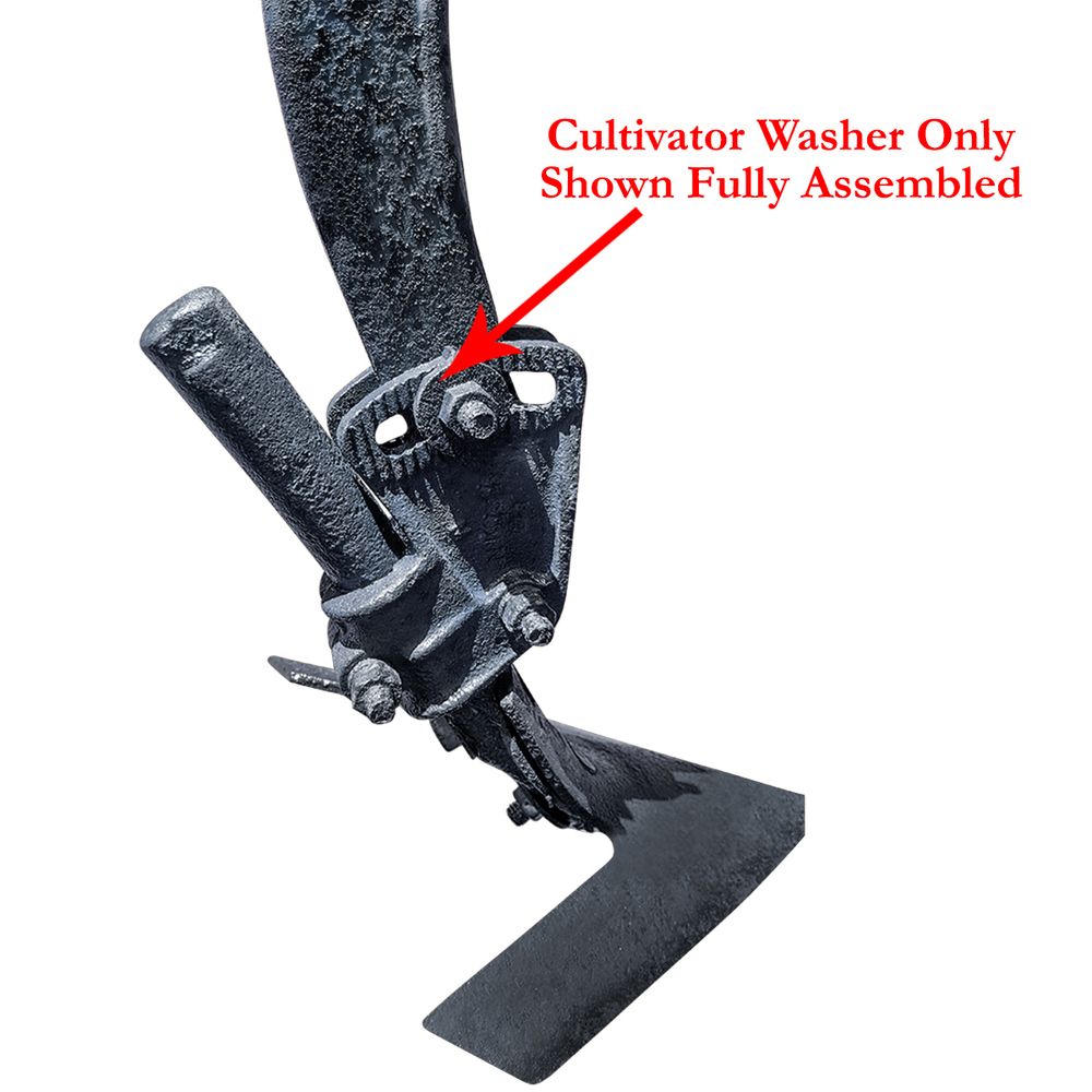 These cultivator washers come in a bag of 4 and are 1-3/8" in diameter. They have a 1/2" hole and are 1/4" thick. This fits the Pittsburg Cultivator.