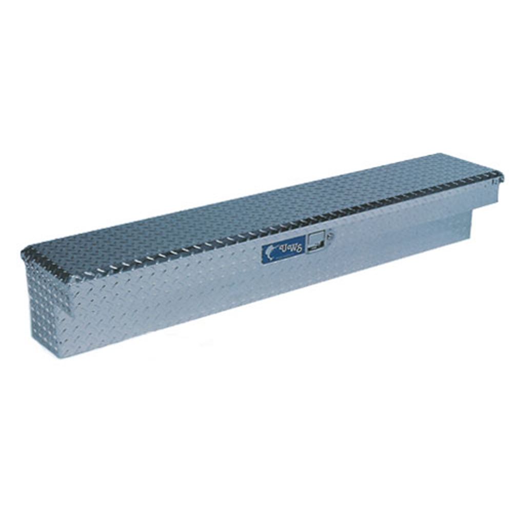 D-TBSM-60 - Side Mount Aluminum Tread Plate Toolbox, These side mount boxes are available in 5 different lengths to fit most size truck beds and toolbox configurations. The tough insulated lids will open to a full 90 degrees; thus easily allowing it to be loaded with large and bulky items. It has sturdy leg brackets that make these boxes the choice for serious construction and maintenance use. These boxes mount on the bed rail above the wheel well. The addition of any of the Side Mount Series to your truck will not only look right but will handle the tough jobs as professionally as you do. It has an independent steel lock and latches. The dimensions for this toolbox are 60 inches long x 11-1/4 inches wide x 11 inches deep.