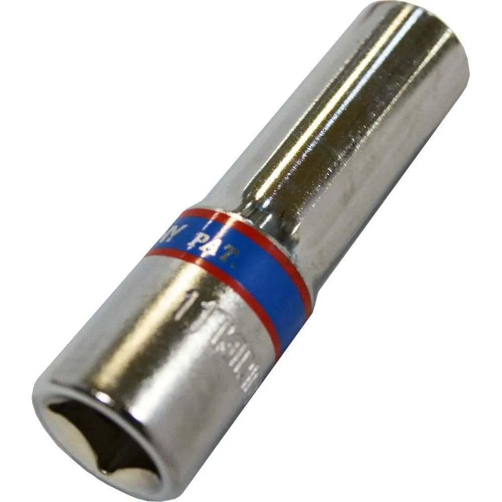 A great tool to have in any garage or shop. The deep wall on this socket can work for a variety of applications that have long studded fasteners or just places that are harder to reach. This Deep socket measures 11M with a 3/8 in. drive.