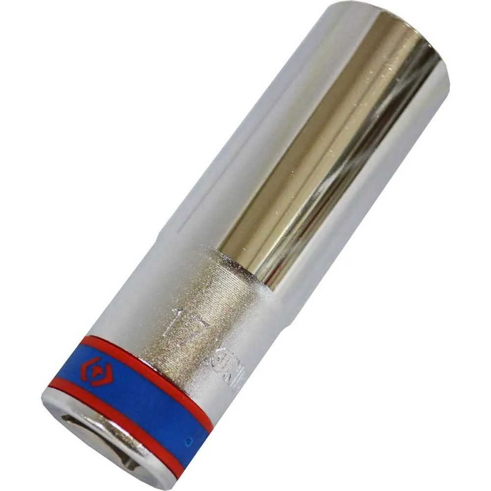 This handy tool can be used on just about any long studded applications or bolts that are hard to reach. This deep wall socket is very durable, constructed from a chrome vanadium alloy steel, it can go through years of use. The length of this deep socket tool measures 2-1/2 in. with a 1/2 in. drive and a 6 point interior. Great to collect different sized deep socket tools so you will always have the right size that best matches the bolt.