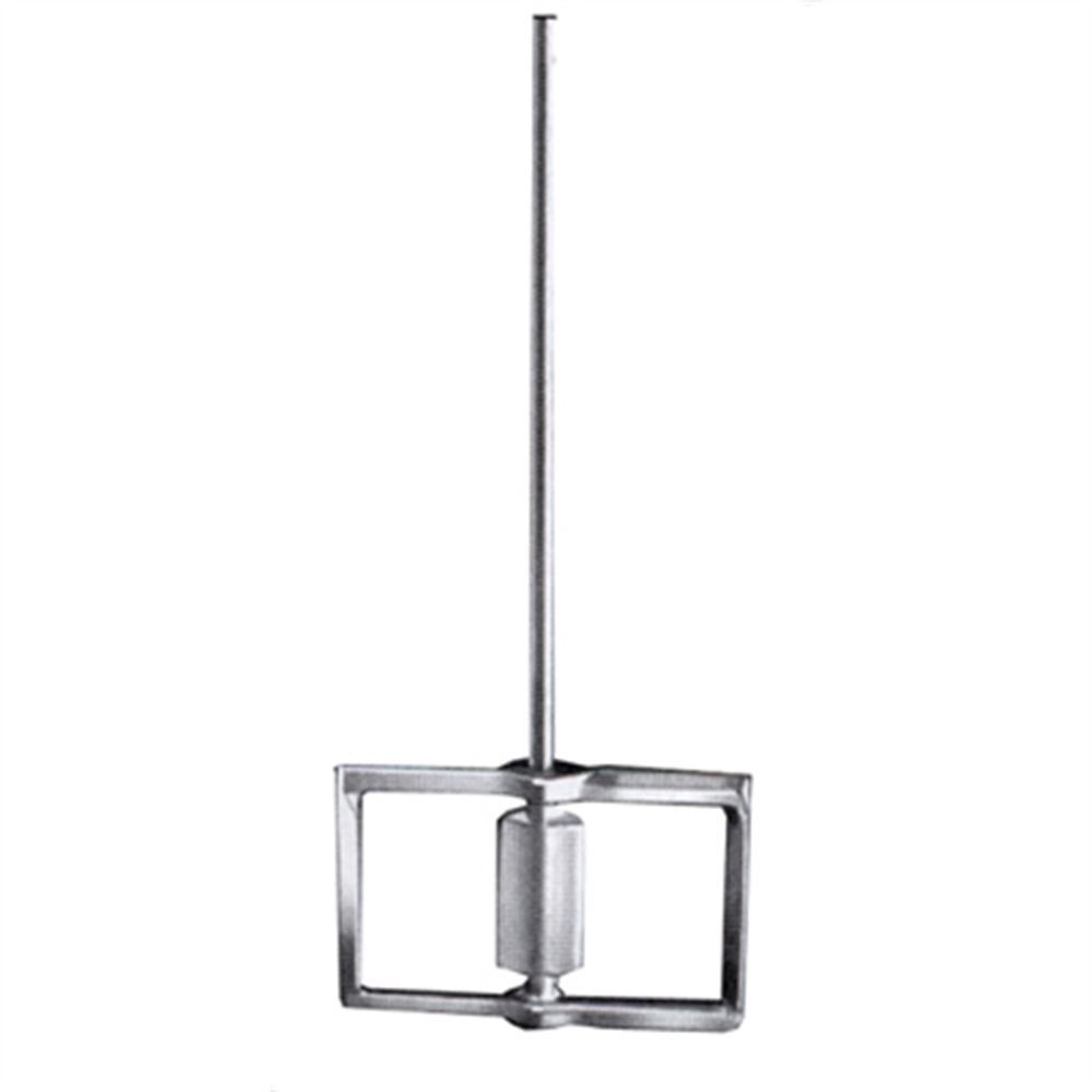 This deluxe mud mixer has a sturdy cast aluminum paddle that is 9-5/8" wide and 6-1/2" tall. The rounded end design creates better balance while protecting the bucket or drum. The head is designed to move the material and to properly mix thick materials. The long steel shaft is 1/2" and hex-shaped to resist turning when used with a 1/2" slow-speed drill.