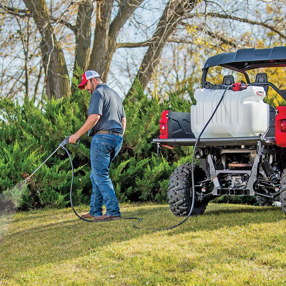 Built to be Roundup® ready, this 40 gallon deluxe spot sprayer is perfect for applying insecticide, pesticides and more. The sprayer is equipped with 2.1 gpm high flo pump. The horizontal throw of the sprayer is 35 ft. and the vertical throw is 25 ft.