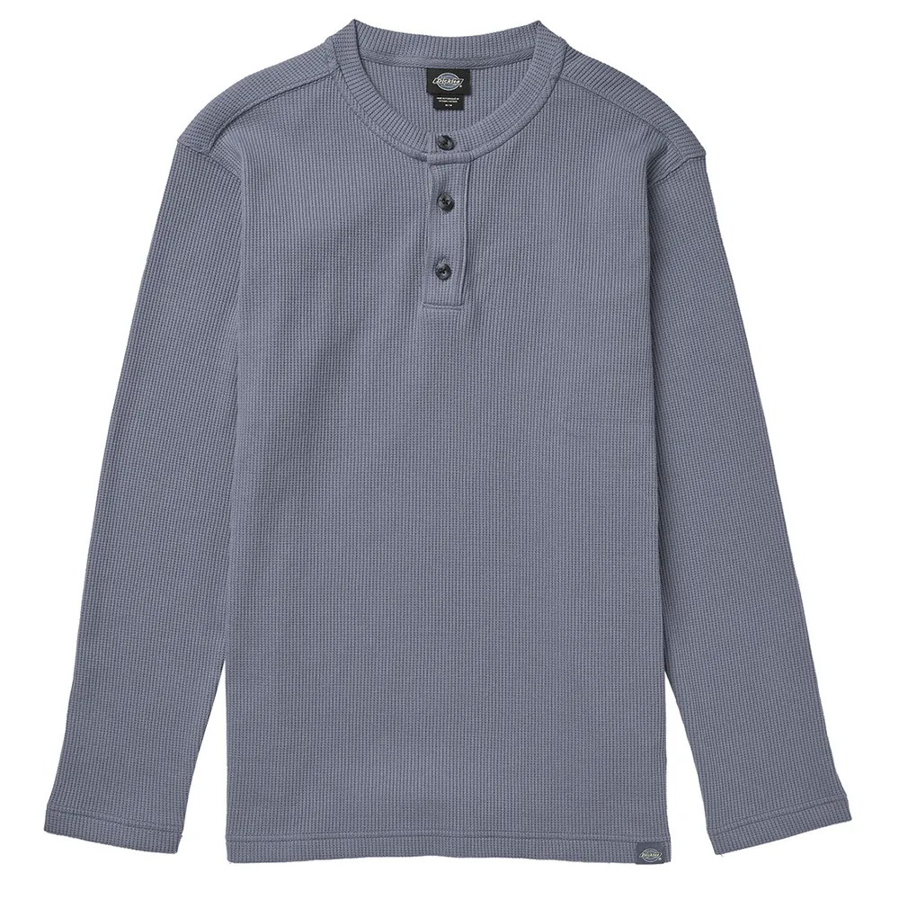 Twill tape 3-button placket. Red locker loop. DTM twill tape at neck. Loop logo label at hem. Logo horn buttons.