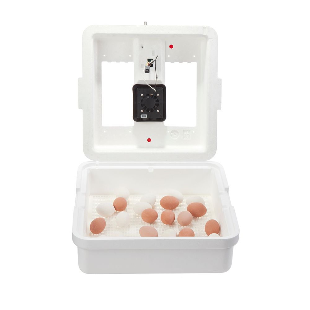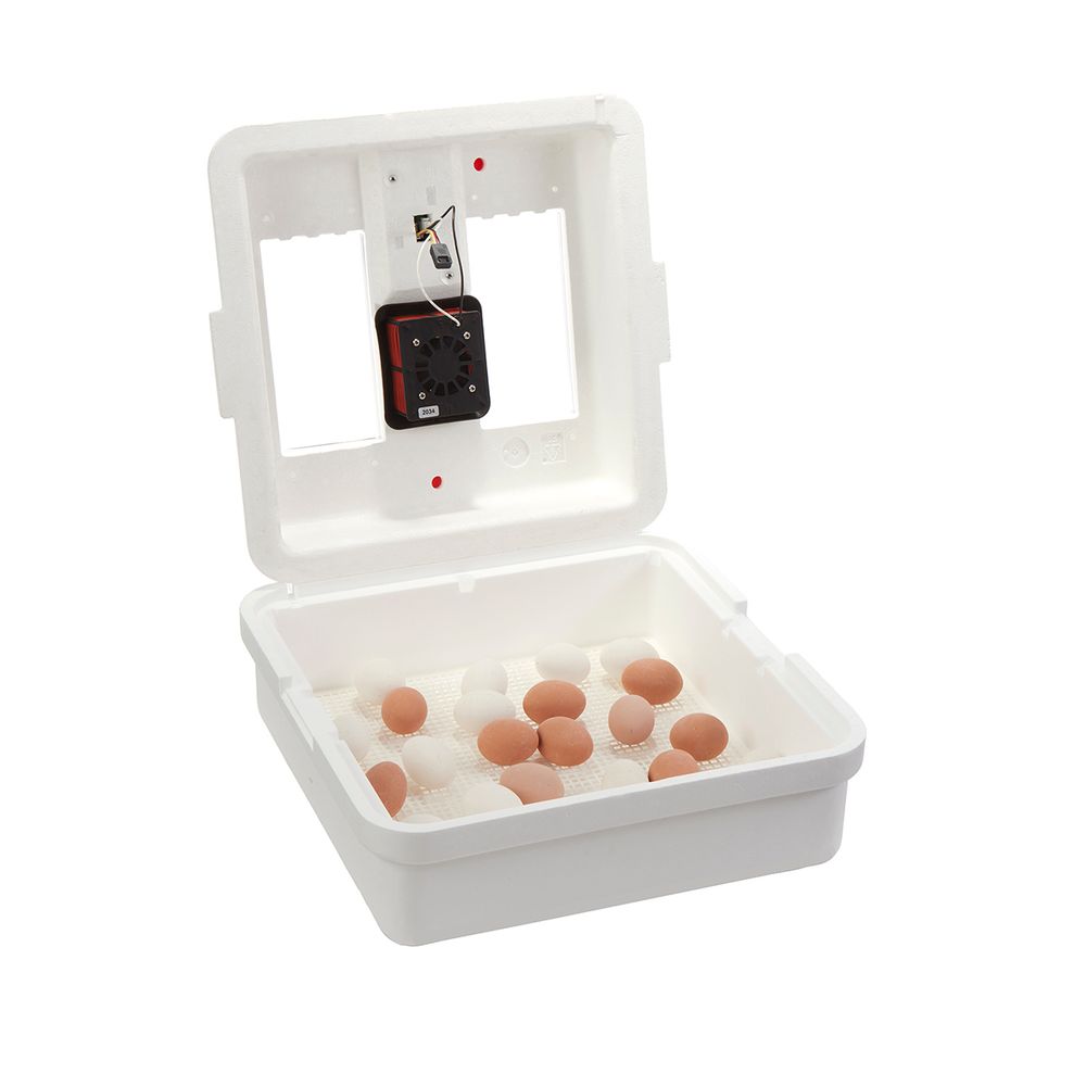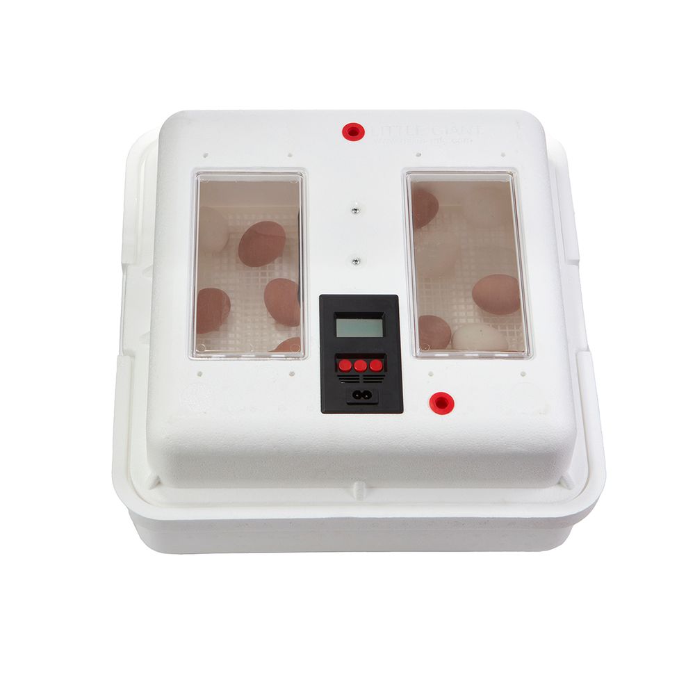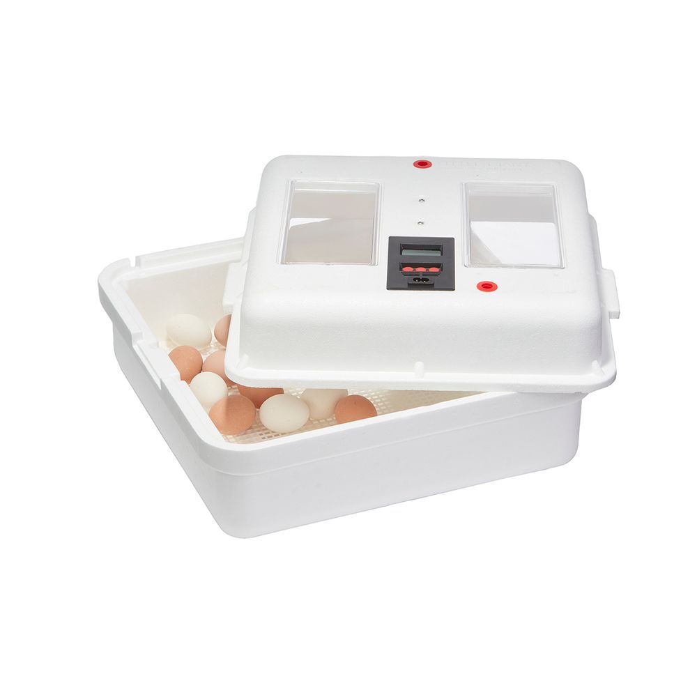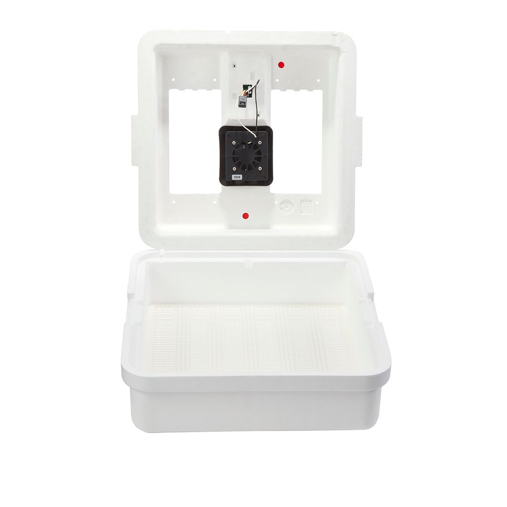 Durable styrofoam in the Miller Still Air Incubator retains warmth from the gentle heating element controlled by a highly dependable, digital control board. The LCD display with LED light shows accurate temperature and humidity readings instantly. The self-regulating control board adjusts the temperature to suit varying environments. The built-in digital hydrometer and moisture channels help maintain humidity, a key factor in egg health. Plastic mesh screen safely supports eggs during hatch period and is also dishwasher safe.