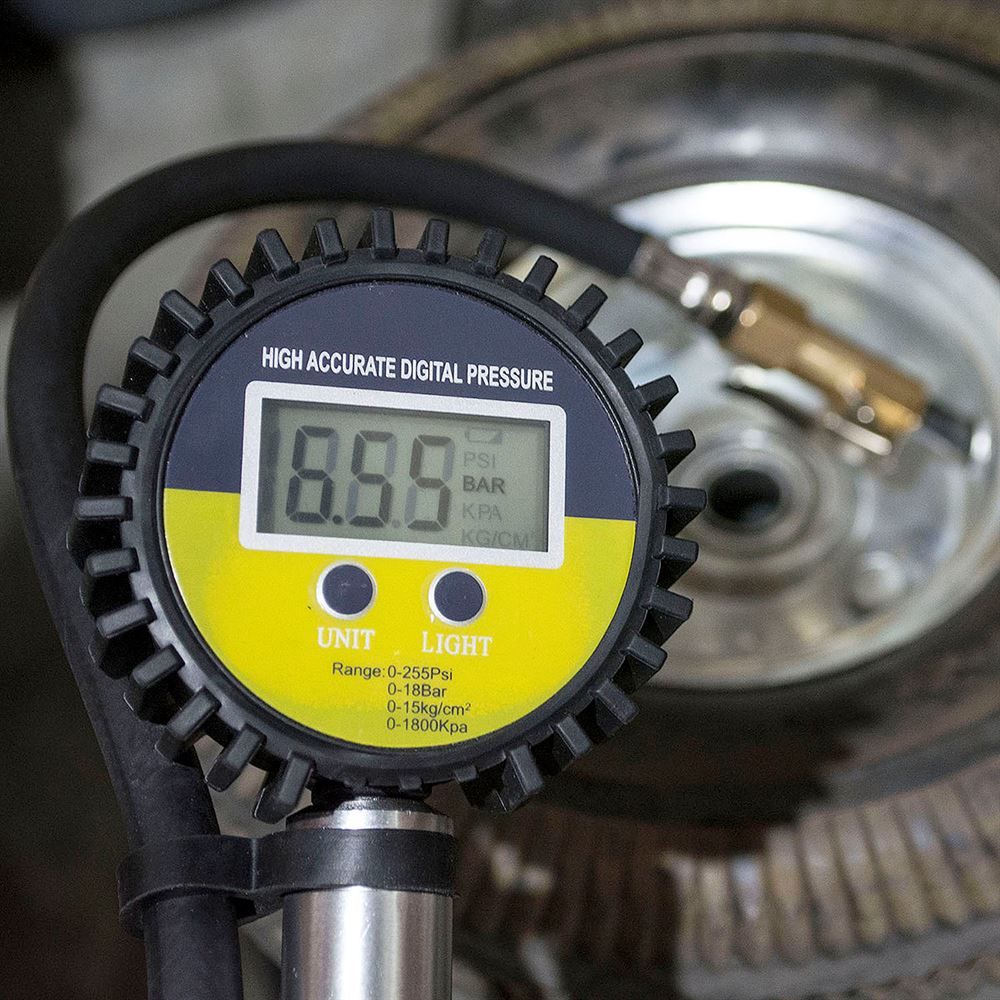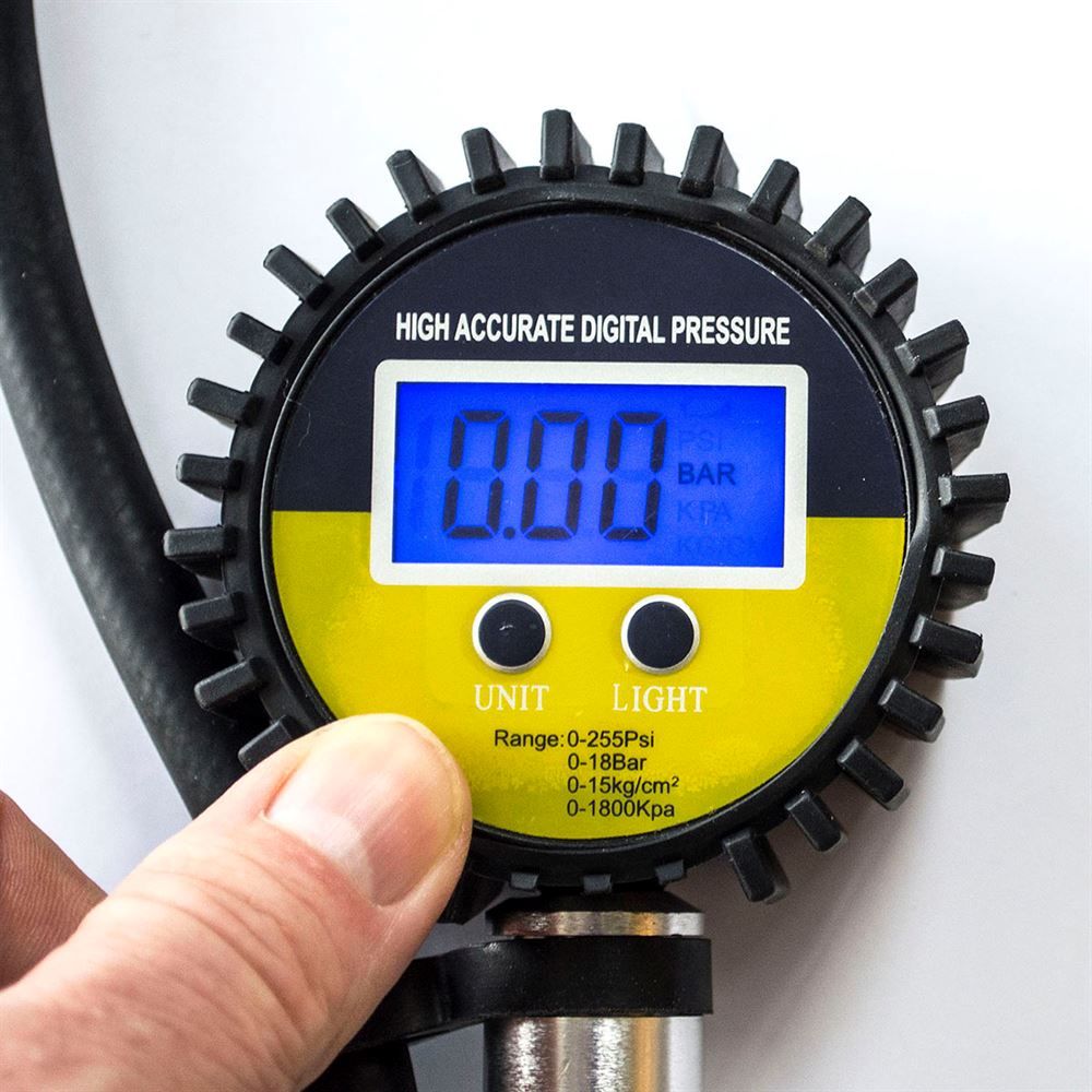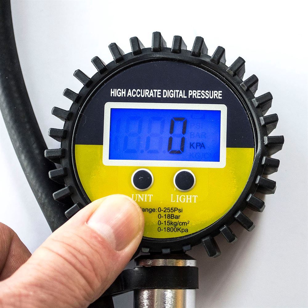 Looking for an automotive Digital Tire Inflator Pressure Gauge? Well look no more this comes with (1) tire inflator gauge, (1) twist-on air chuck, (4) valve caps, (1) brass air chuck, (2) AAA batteries, (1) 1/4" NPT steel fitting, (1) 1/2" NPT steel fitting, (1) valve core tool.