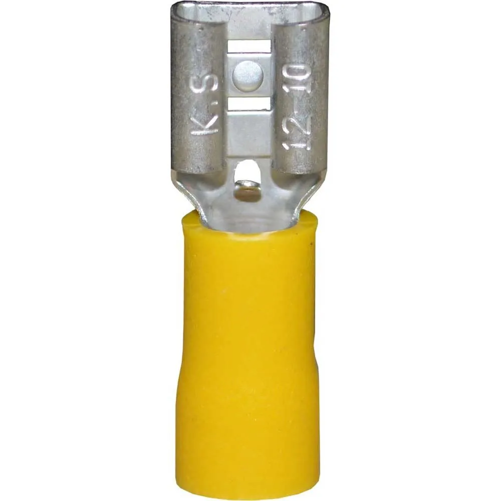 Female Spade Connector with Yellow Vinyl-Insulated Barrel for #12-#10 AWG (16 pack)