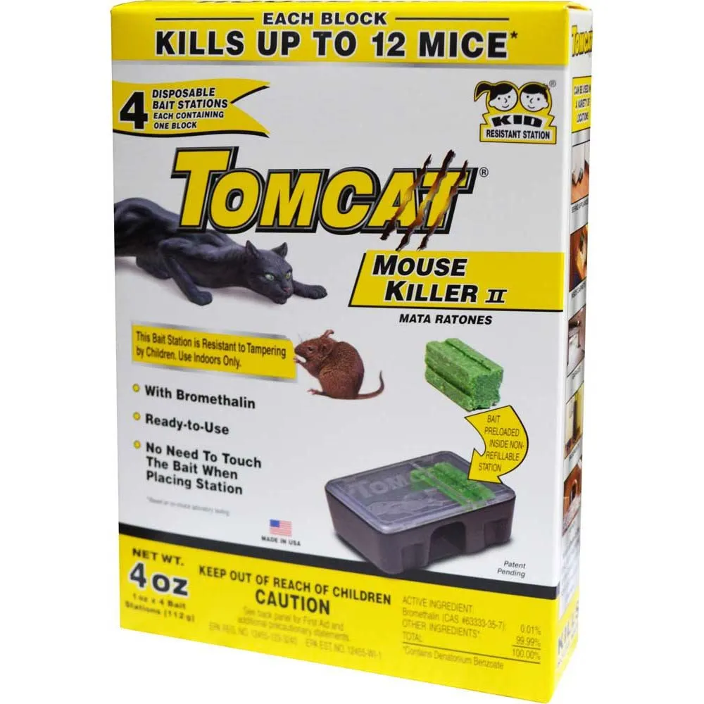 For rodent control, use the Tomcat® bait and bait station. Each station is ready-to-use with a 1 oz. block of bait. Once the bait is gone, the station is disposable.