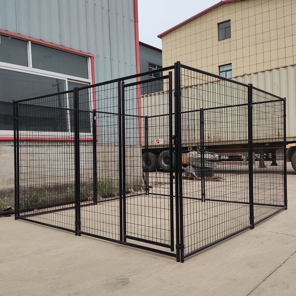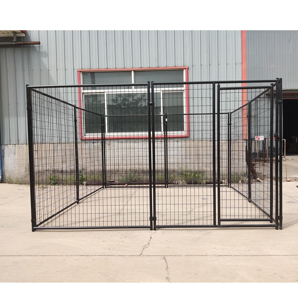 Assemble this large dog kennel as a useful housing space for your dog. There are 8 panels that connect together, one panel features the door that opens and closes and has a latch. The metal tubing at the perimeter of each panel measures 1-1/4 inches in diameter. Overall this kennel is powder coated to help protect it from corrosion against harsh weather conditions. This 10 ft. dog kennel has 6 ft. tall walls to prevent large dogs from jumping or climbing over them. When storing this powder coated dog kennel, the pieces disassemble and lay flat.