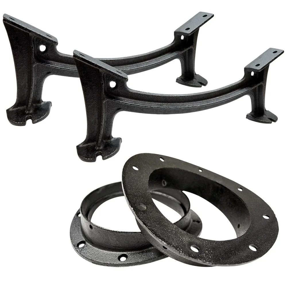 Combine this double stove kit with ASC # 83310 Camp Stove Kit for an outdoor heat source. This double barrel heater kit includes two leg sets, two collars, and mounting hardware required.