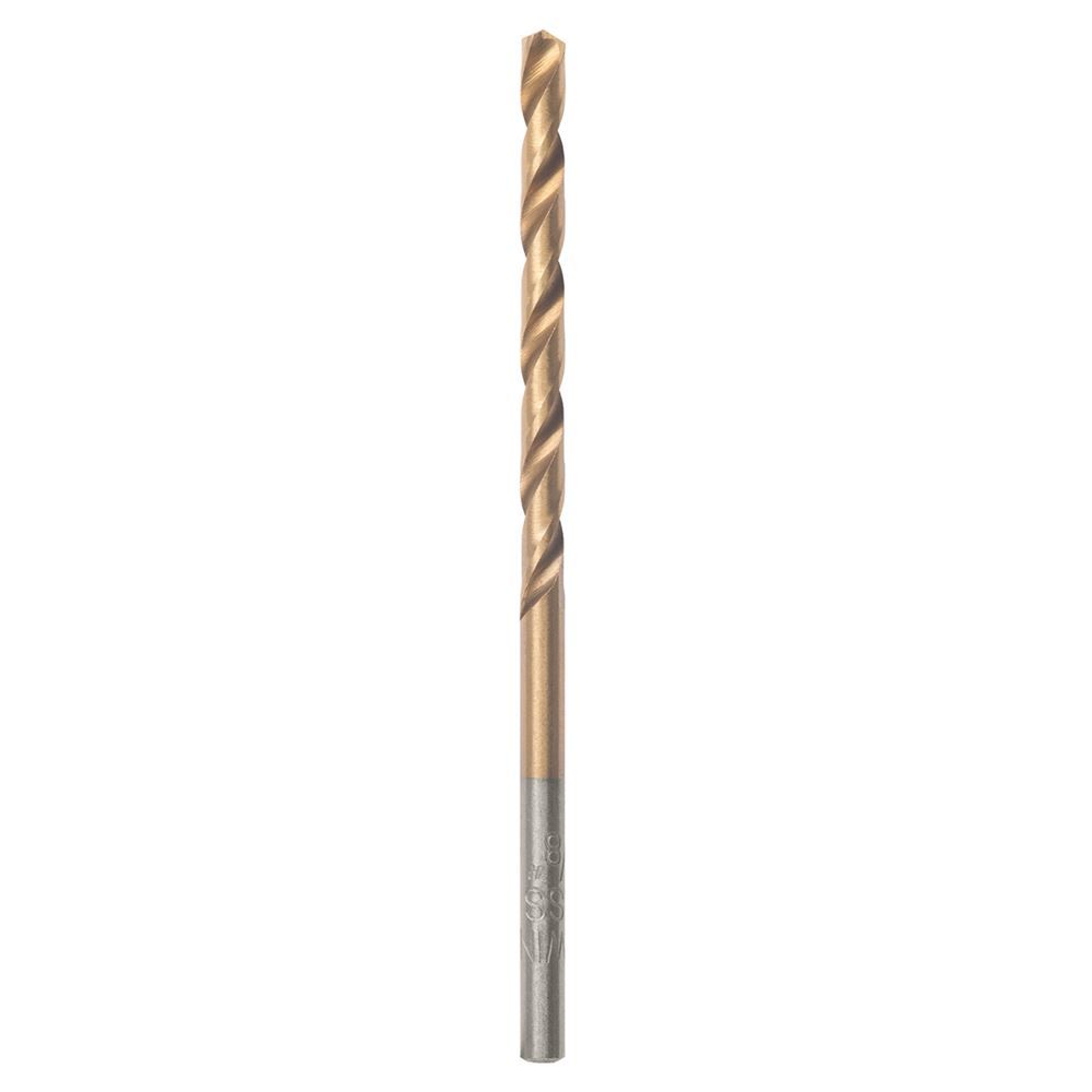 Titanium nitride coating extends the life of the bit. It lasts up to six times longer than standard high-speed steel drill bits.