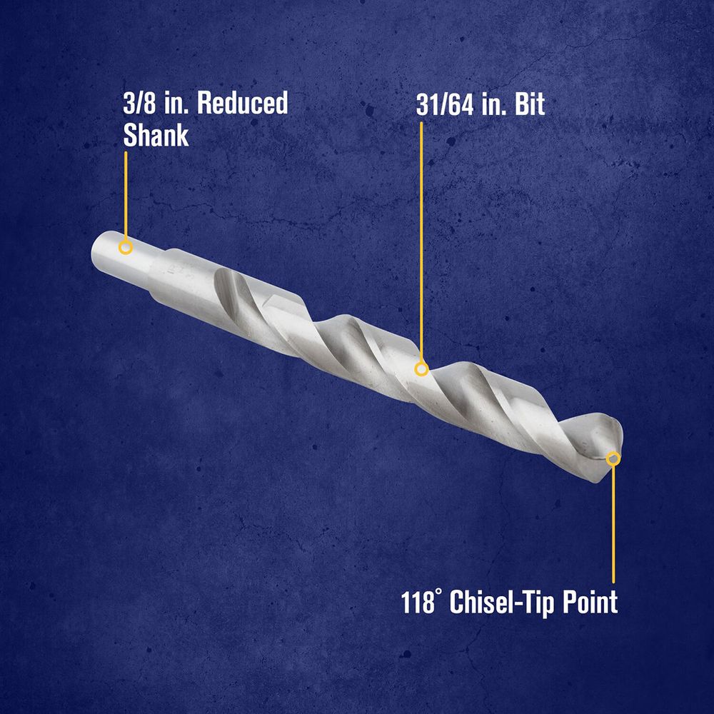 This general-purpose bit is good for use in drilling holes in wood, metal, or plastic. It has a shank that will fit all 3/8 inch drills.