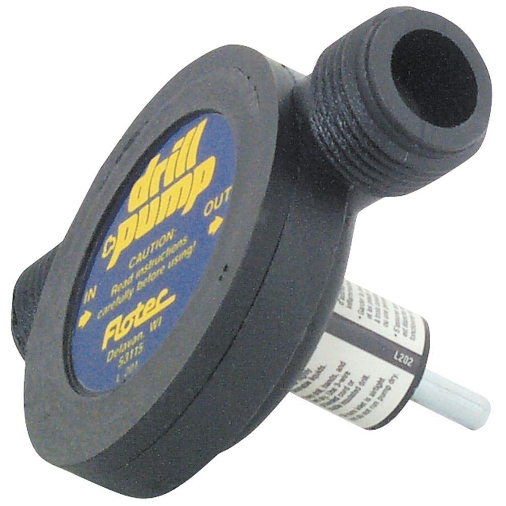 This self-priming drill pump does an ideal job removing up to 225 gallons per hour of water using a drill with a minimum speed of 1200 rpm.