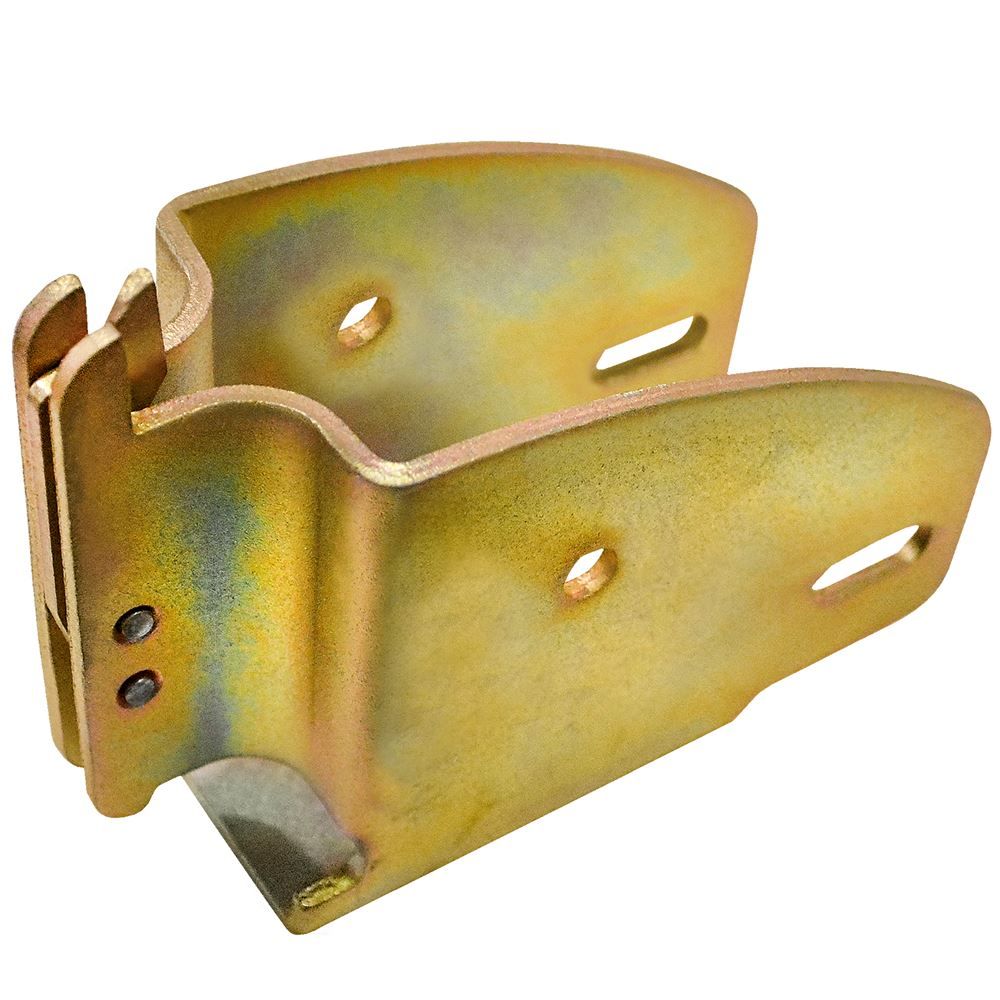 Secure lumber along an E-track clip with the help of this board holder. It can fit 2 x 4 or 2 x 6 sized boards, and the back of the holder has built in clip to easily attach to the track. The construction is from metal and it is zinc plated to coat and help preserve the metal. There are small bolts holes featured on the sides of this board holder if desired to use, but additional mounting hardware is not included. This holder is sold individually but a set of two would be required to evenly support a wooden board along E-track clips.
