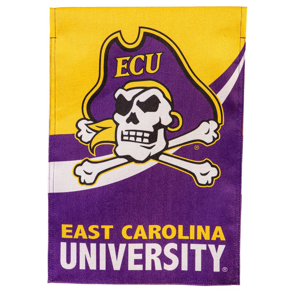 Show your excitement for your team by displaying this colorful ECU garden flag! Constructed from burlap, this flag is resistant to most weather conditions. The print is also double-sided.