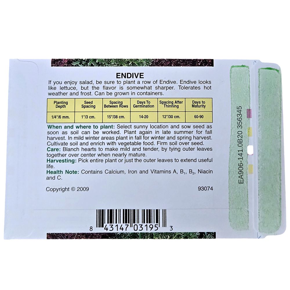 Green Curled Endive Seeds 1/16 oz. Pack