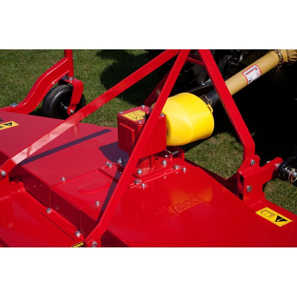 TC480NSLD - 48" Caroni Estate Side Discharge Mower. The versatility, simplicity and safety are the three main features of the TC rear mower. It is designed and produced with the most up-to-date technologies and the most advanced construction systems, it is ideal for use with tractors ranging between 12 and 20 HP. The hitch is a category 0, and the PTO speed is 540 RPM. This mower has 3 blades, with a blade speed of 3250 RPM and a cutting width of 48" and can be used for any type of grassy area from fields to golf courses, parks to motorway grass verges, and lawns to sports grounds. Four extra-large wheels always ensure a precise cut, which may range from 1" to 4". All models are based on a support chassis consisting of a single cold-drawn block. Toughness and compactness are just two more features that apply to this adaptable, easy-to-handle machine. Some other features are its easy-to-adjust cutting height, which can be altered simply by shifting the spacers mounted on the fork shaft, its 3rd anchoring point, which "floats" to allow the machine to follow the contour of the ground, and its easily-regulated belt tension, which simply requires the adjustment of a single screw. The mower has seven easily-accessible greasing points and the thickness of the steel on this mower is 9 gauge.