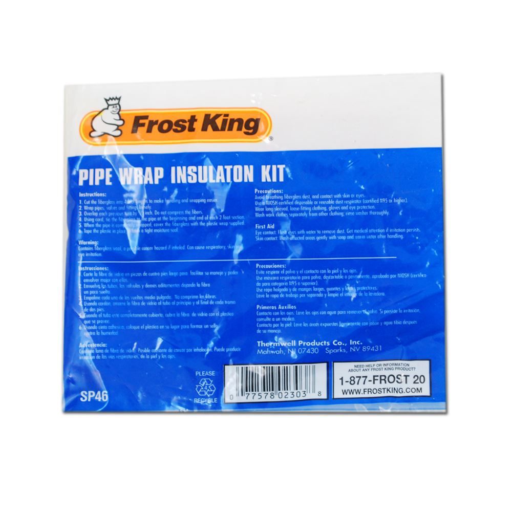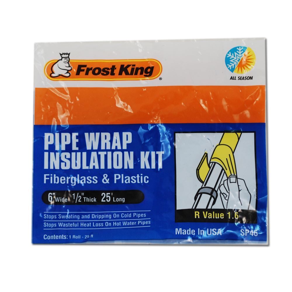 Frost King Fiberglass Pipe Wrap Installation Kit is a simple effective way to insulate pipes of all diameters. Can be used for overwrapping electric heat cables to prevent water pipes from freezing.