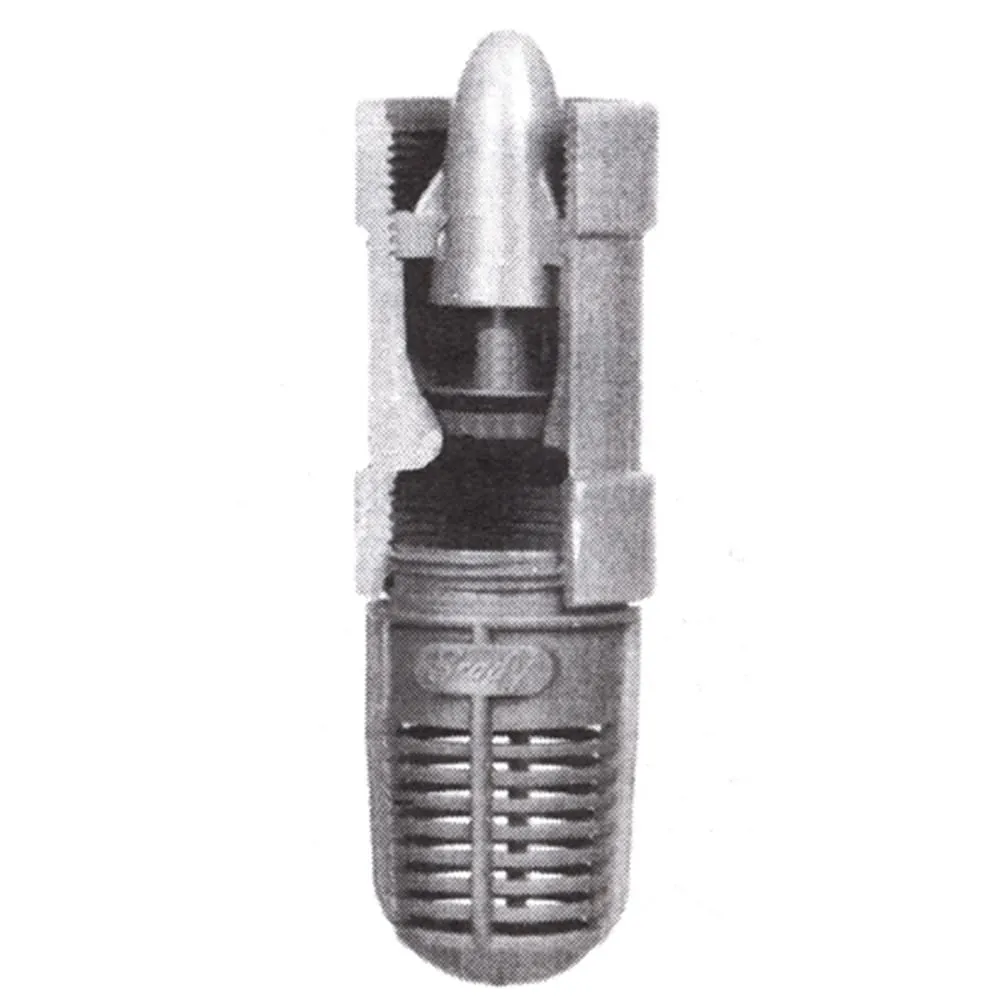 This 1 1/4" FPT (female pipe thread) spring-loaded foot valve is molded from polymer materials and is non-corrosive. It will work in any position vertical or horizontal.