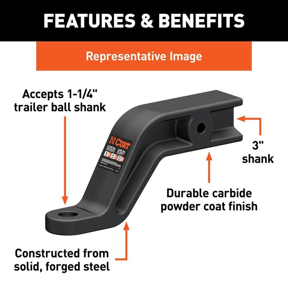CURT Forged Ball Mounts are able to tow up to 17,000 lbs of gross trailer weight and up to 2,550 lbs. of tongue weight, giving them more power to handle especially heavy loads.