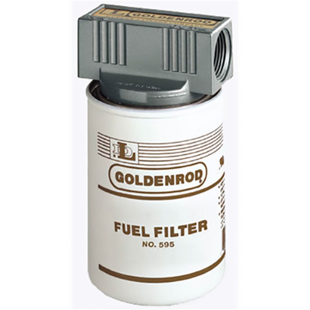 Designed with 1 in. NPT fittings, this Goldenrod® fuel filter will capture microscopic particles as small as 10 microns, removing rust, dirt, lint, and other contaminates. Measuring 5 in. high with a 3-3/4 in. diameter, this canister fuel filter has a maximum recommended flow rate of 25 gpm. The top cap is constructed of die cast zinc for durability and the canister is disposable for your convenience. With a working pressure up to 50 PSI, this fuel tank filter works with gasoline, diesel or fuel oil. Use this canister fuel filter with biodiesel blends up to 20%, as well. Provide clean fuel for your engine with this Goldenrod® fuel filter.