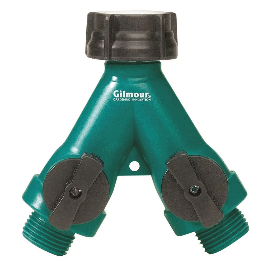 Provide the maximum amount of water flow to your sprinklers and hoses with this dual connector. This Y-connector has a dual shut-off valve that controls water flow to either leg. An easy-on swivel connector means accurate connection to the faucet. Constructed from polymer, this 2-way connector is rust and impact resistant.