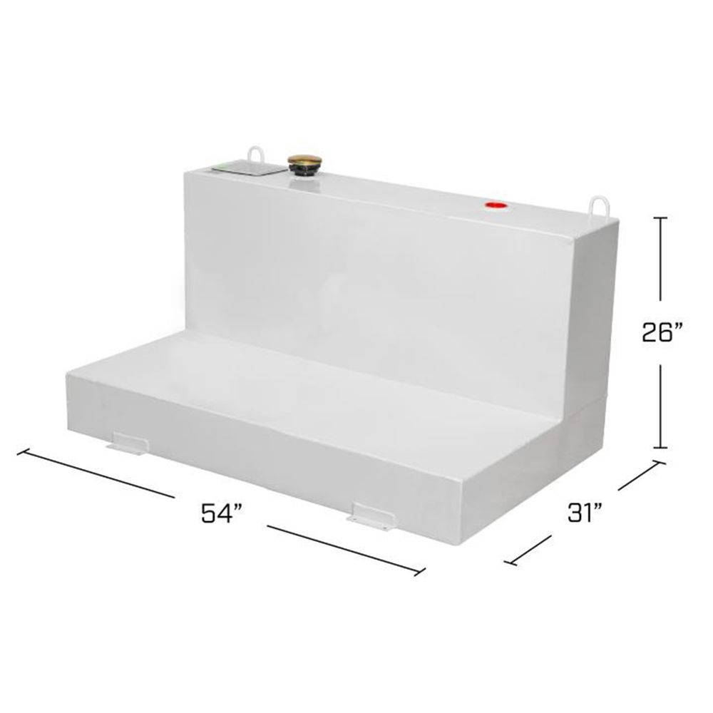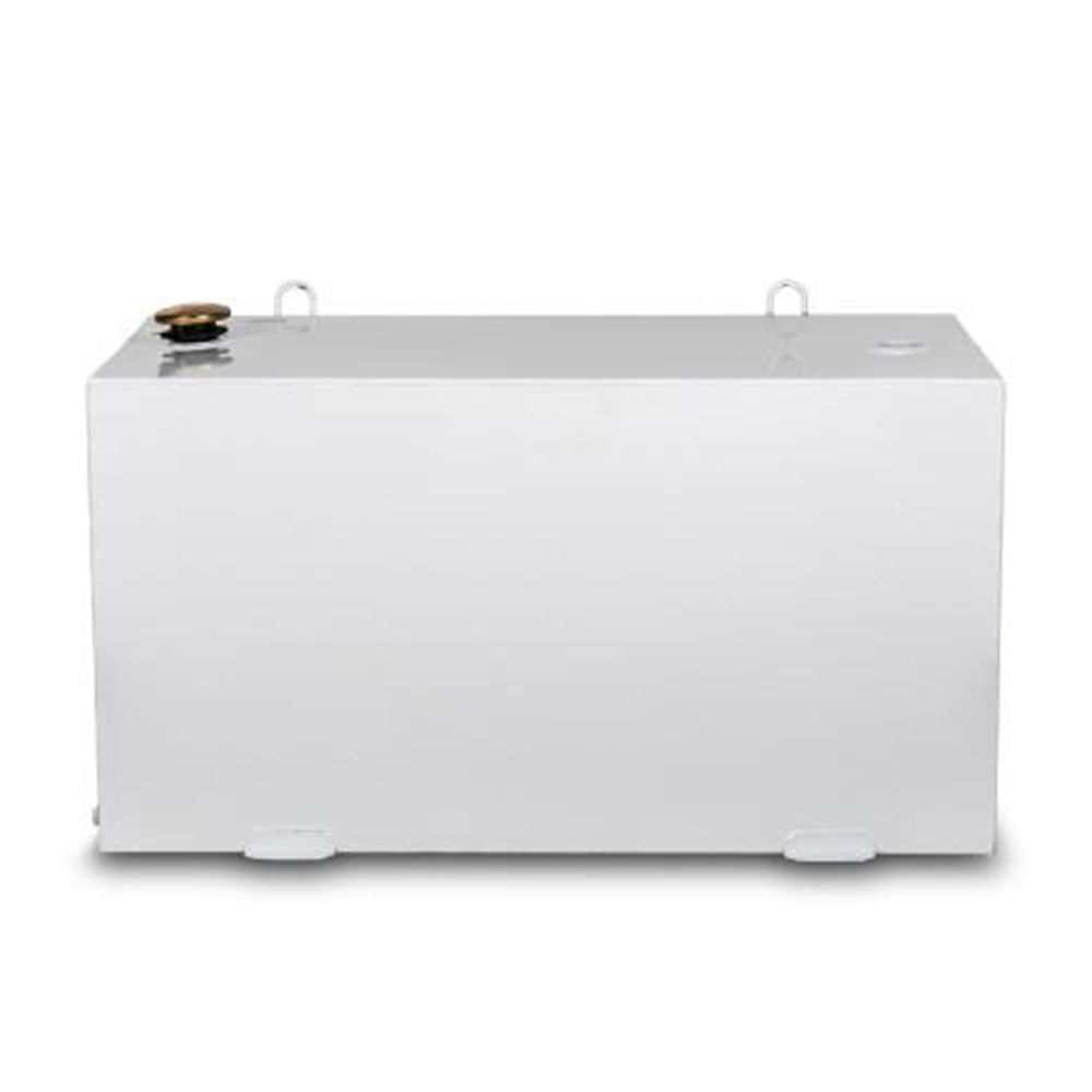 The diesel tank is pressure tested for leaks. The 2 in. NPT reinforced bungs allow convenient use from either side, a filter system is recommended. There are built-in lifting rings to assist with lifting and moving an empty tank, larger models have 2 rings. It has a lockable filler cap and coupler that will prevent excessive pressure build up, and heavy duty brackets to secure the tank to the truck.