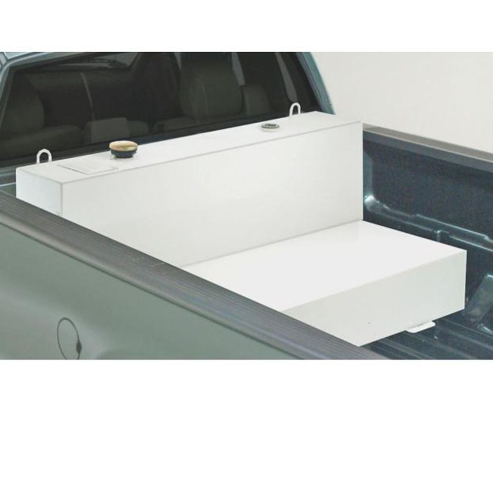 All brackets must be bolted to the truck bed. The tank cannot be connected to existing fuel system. Contact the fire marshal for local codes. The tank meets the requirements for storage of combustible fuels only and is not designed for flammable fuels such as gasoline.