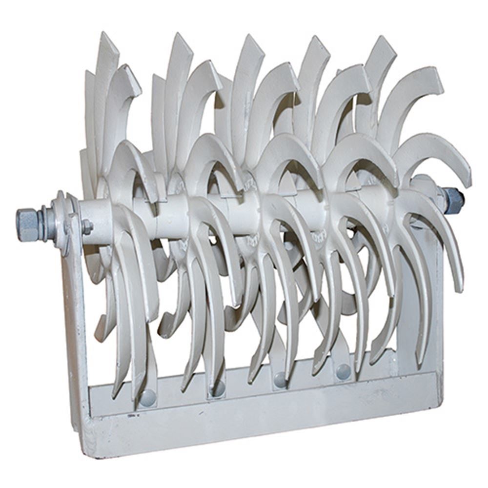 Rolling spider cultivator assemblies till soil and weeds and allow water to penetrate deeper into future seed beds. This left handed unit, made to be paired with its right handed counterpart, has adjustable height and is made of heat treated steel. It includes three scrapers and five 16 in. spiders to break up and loosen the dirt.
