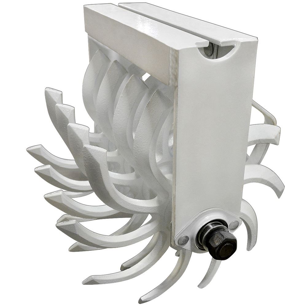 A rolling cultivator spider wheel is designed to till soil and weeds and break up loose dirt in fields. This operation helps create more efficient water penetration in future seed beds. This right handed unit is made to be paired with its left handed counterpart ASC # 49445 Right Hand Assembly. The diameter of each spider assembly wheel measures 16 inches, and it is constructed from heat treated steel. This 5 gang assembly also includes three scrapers.
