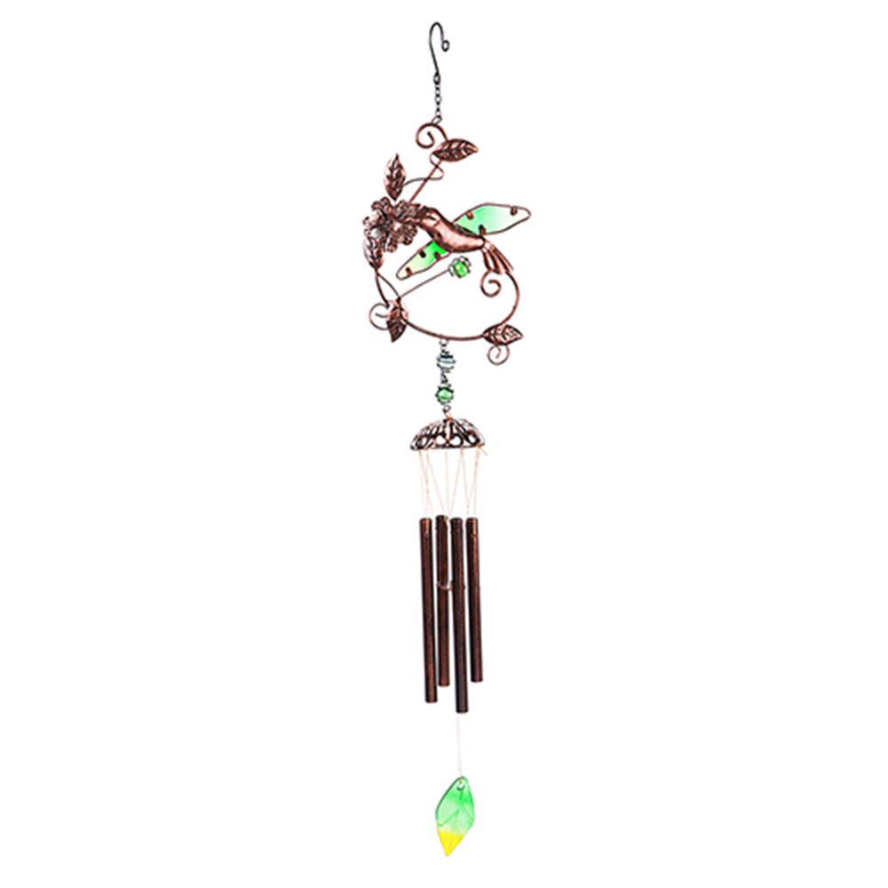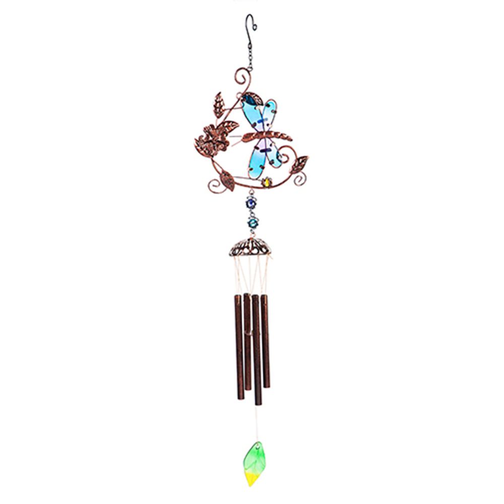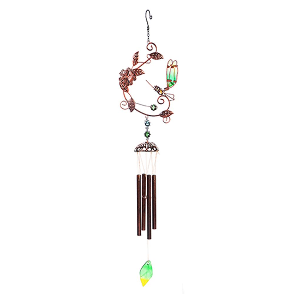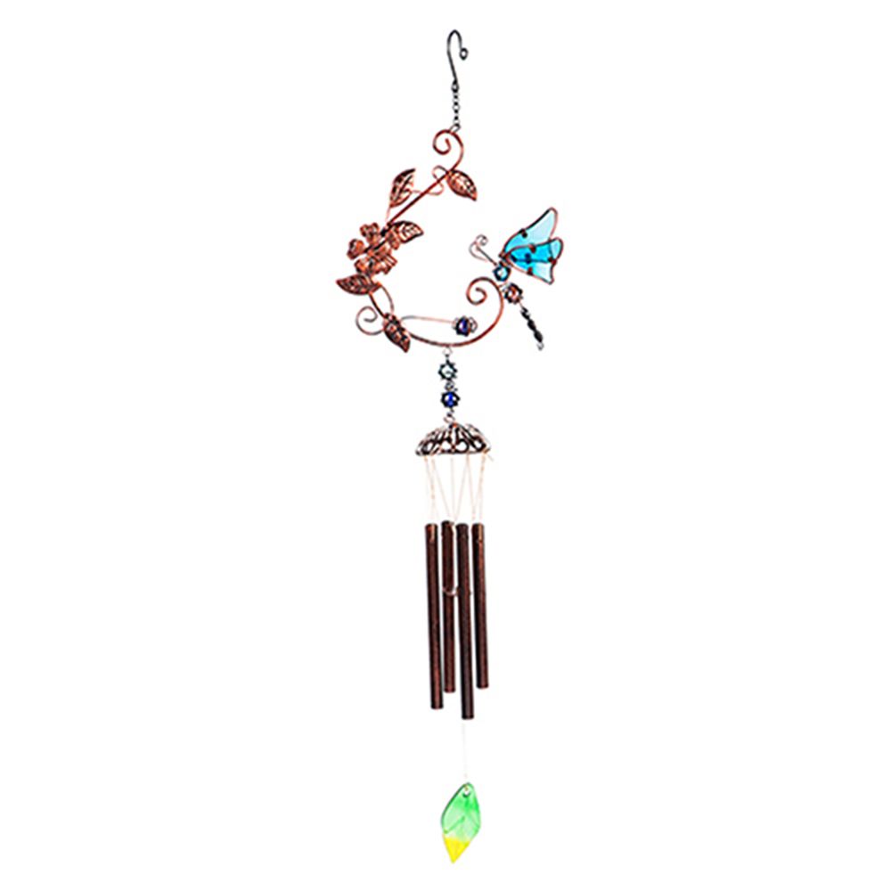 This Evergreen garden bug assortment of wind chimes is made of durable metal and glass accents. Glass accents include butterflies, dragonflies, leaves, or hummingbirds.