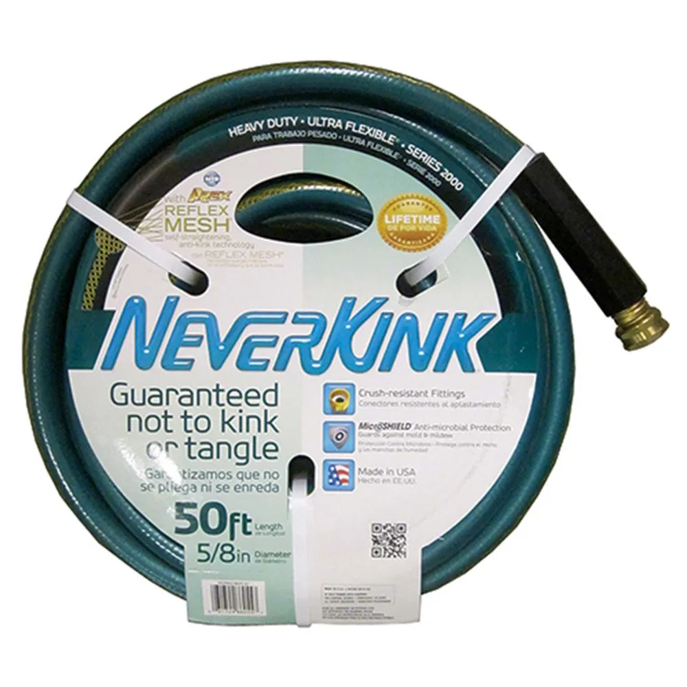 Made with rubber, this industrial grade water hose has a heavy duty radial braid to reinforce the hose. With a KinkGuard™ power coil, the water hose will stop kinking at the faucet. This hose is 5/8 inch in diameter and 50 ft. long. The water hose is not intended for drinking water use; however, this water hose can be used with hot and cold water.