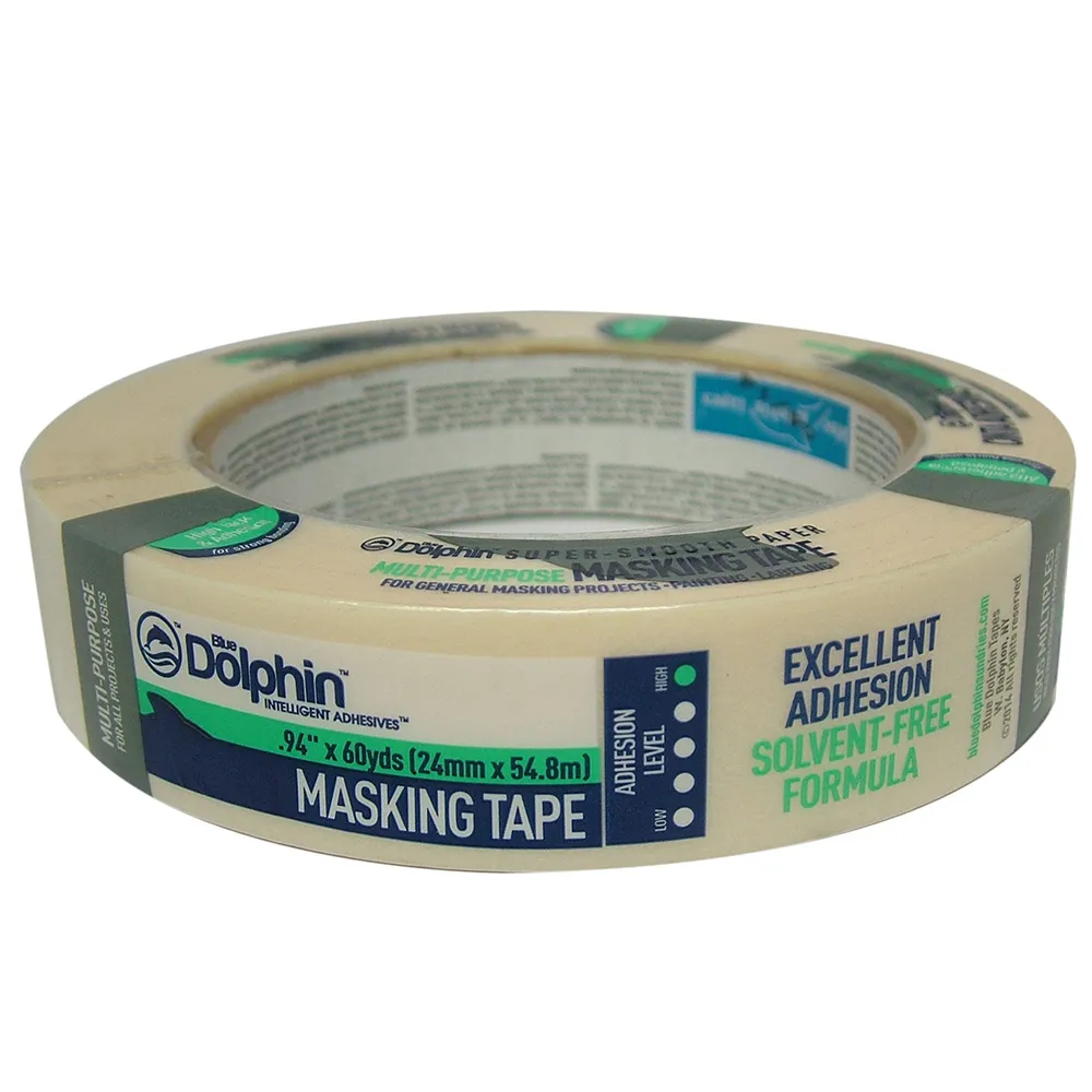 This Blue Dolphin® General Purpose Masking Tape features high tack and is super smooth.