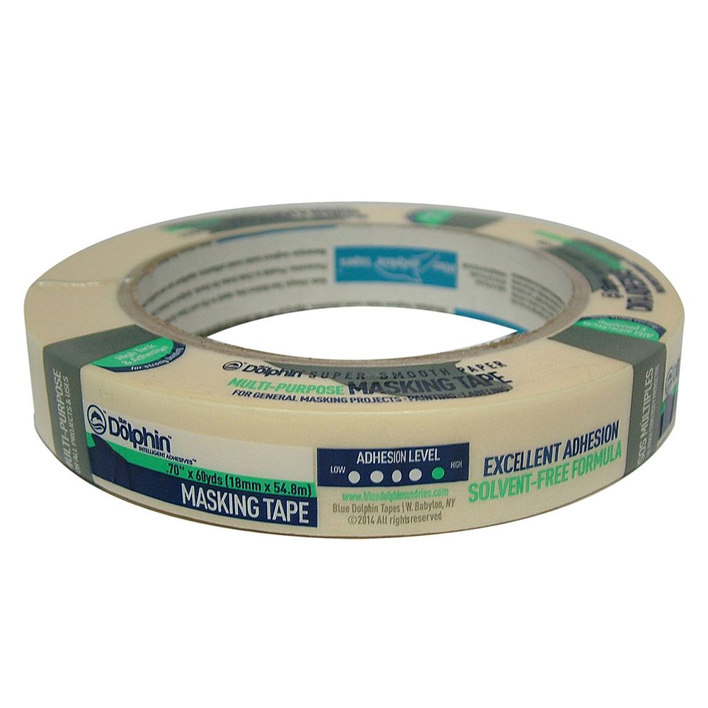 This Blue Dolphin® General Purpose Masking Tape features high tack and is super smooth.