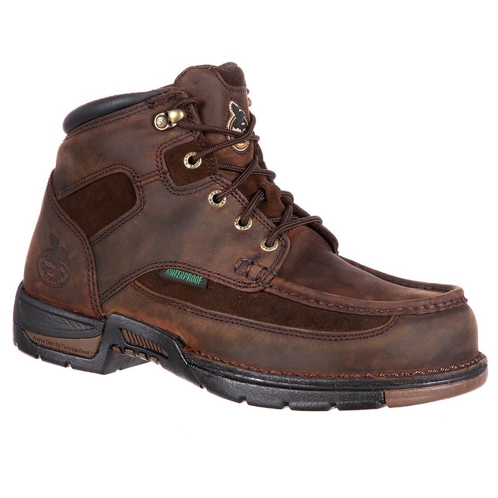 This 6 inch lace up work boot provides comfort and safety. The waterproof work boot meets ASTM standards for toe and electrical hazards. With a anchor disc technology, advanced memory polyurethane foodbed, built in shank and padded collar and tongue, this Georgia Athens work boot will be easy on your feet.