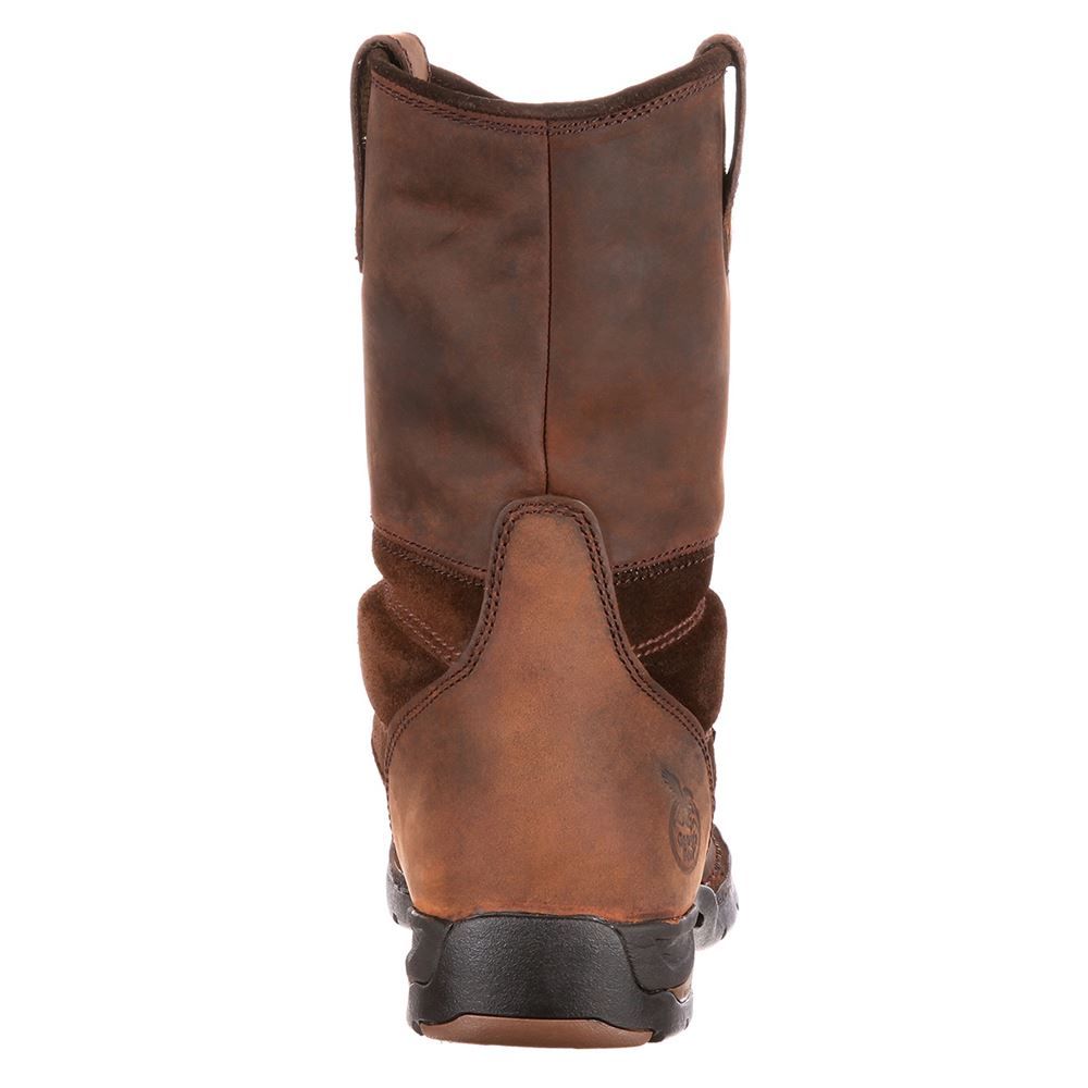 This stylish pull-on boot is by Georgia Boot. Waterproof, the boot upper is constructed of leather and suede panels and the boot is 10 inches in height.