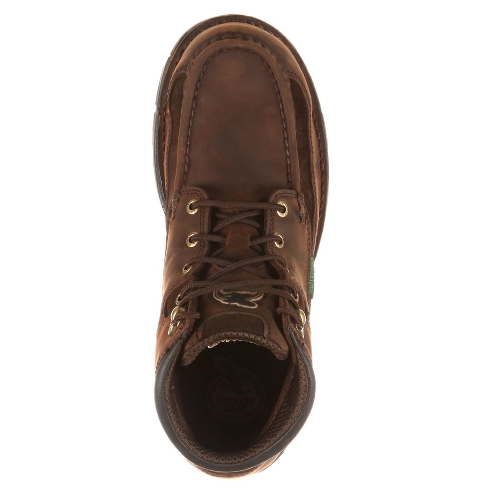 The Georgia Boot® Athens Steel Toe Waterproof Work Boot features the Georgia® Waterproof System that lets air in but keeps water out.